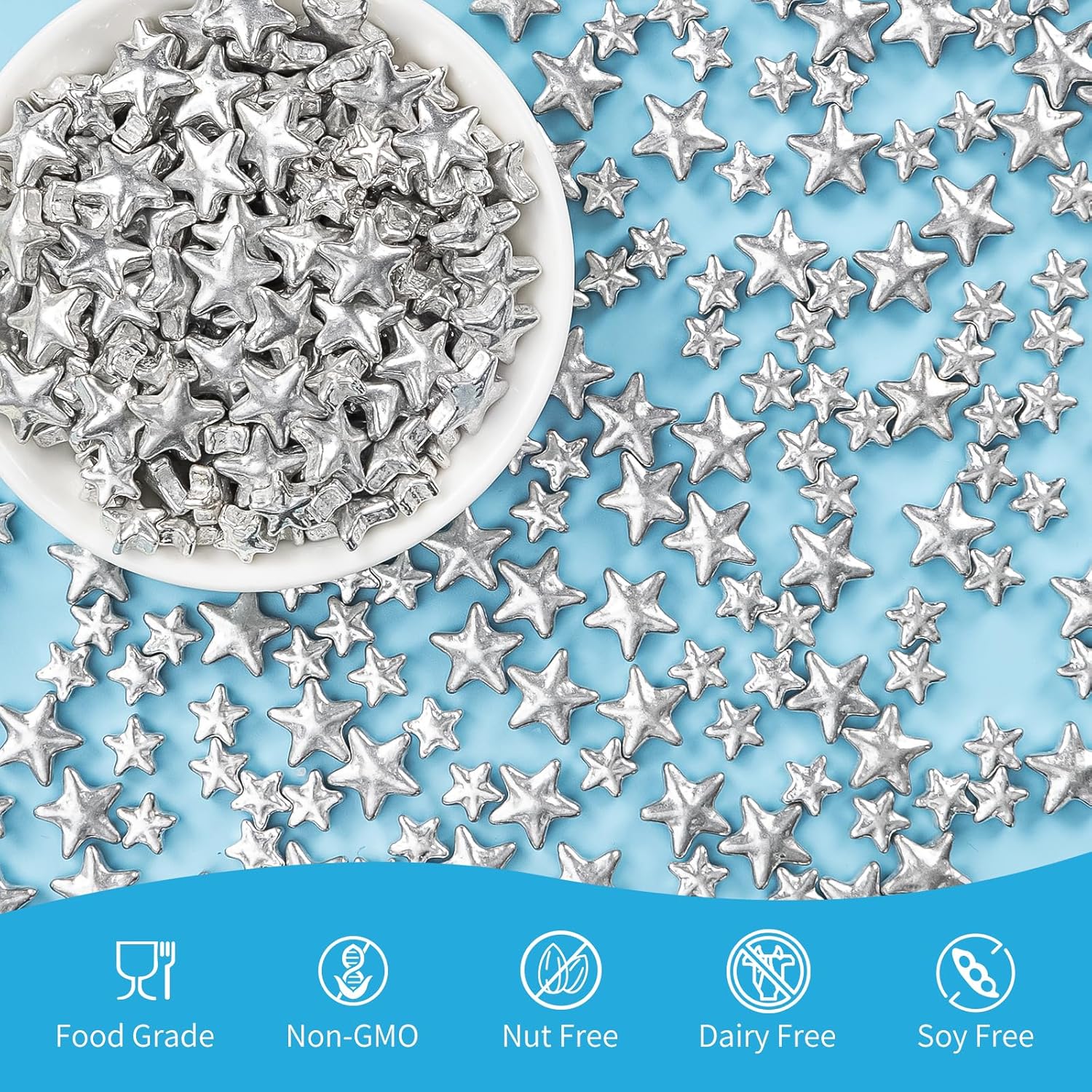 - Luxurious Silver Star Sprinkles:These bright silver star sugar sprinkles mixes are classy for wedding and birthday cakes,holiday baking and decorating.These stars sprinkle mixes are classy for birthday cakes,holiday baking and decorating anniversaries,Halloween, Christmas, New Year’s,Valentine's Day and other special occasionsAnd you can also use them to embellish cookies,cupcakes,ice cream,fondant and pastries for added allure.secorating your favorite baked dessert with our mixing-sized lustrous Silver Star Sprinkles will surely elevate your presentation,and more to add party fun
