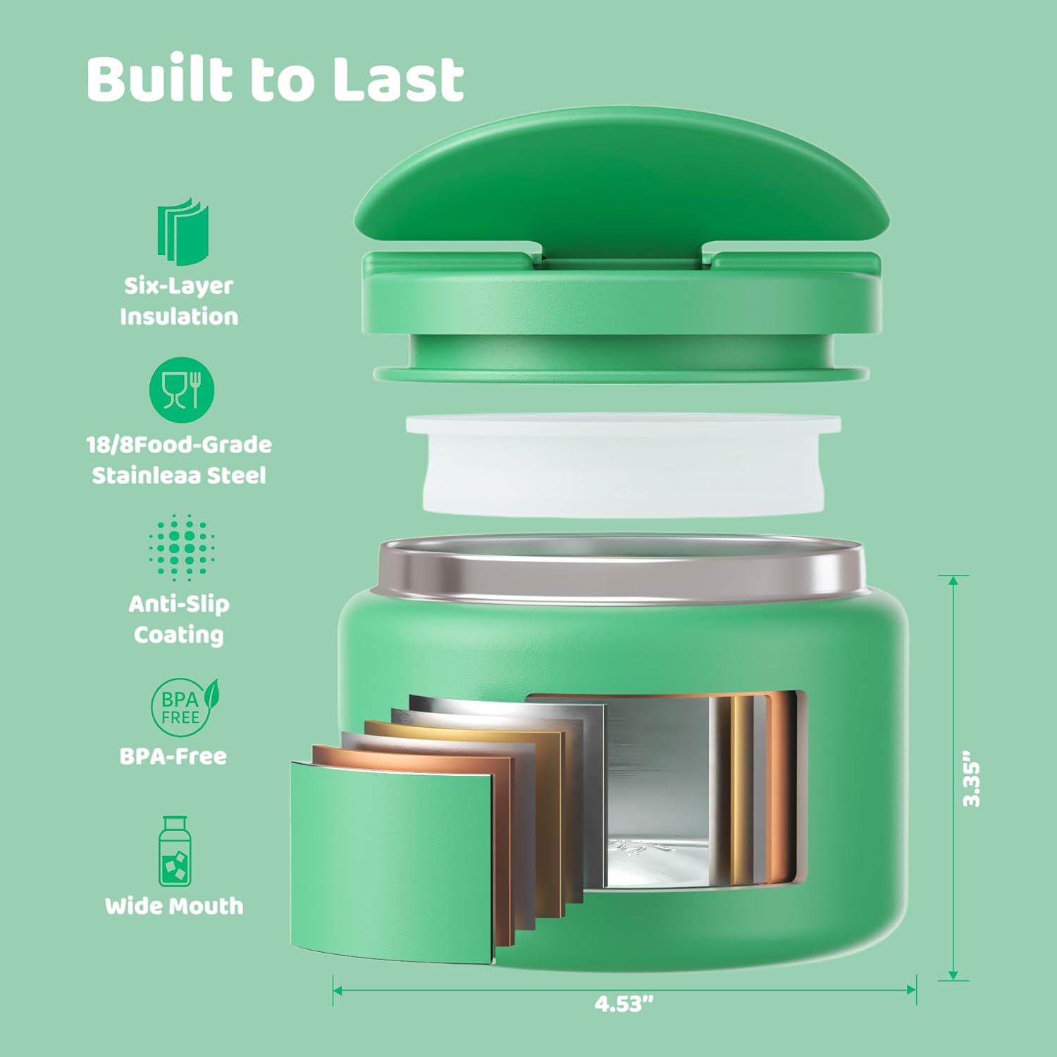 - [ Vacuum Insulated ]: The whole thermo made of 18/8 Stainless Steel with vacuum insulation. Keep your food hot/cold for 6-12 hours. Enjoy your warm meal on the go!