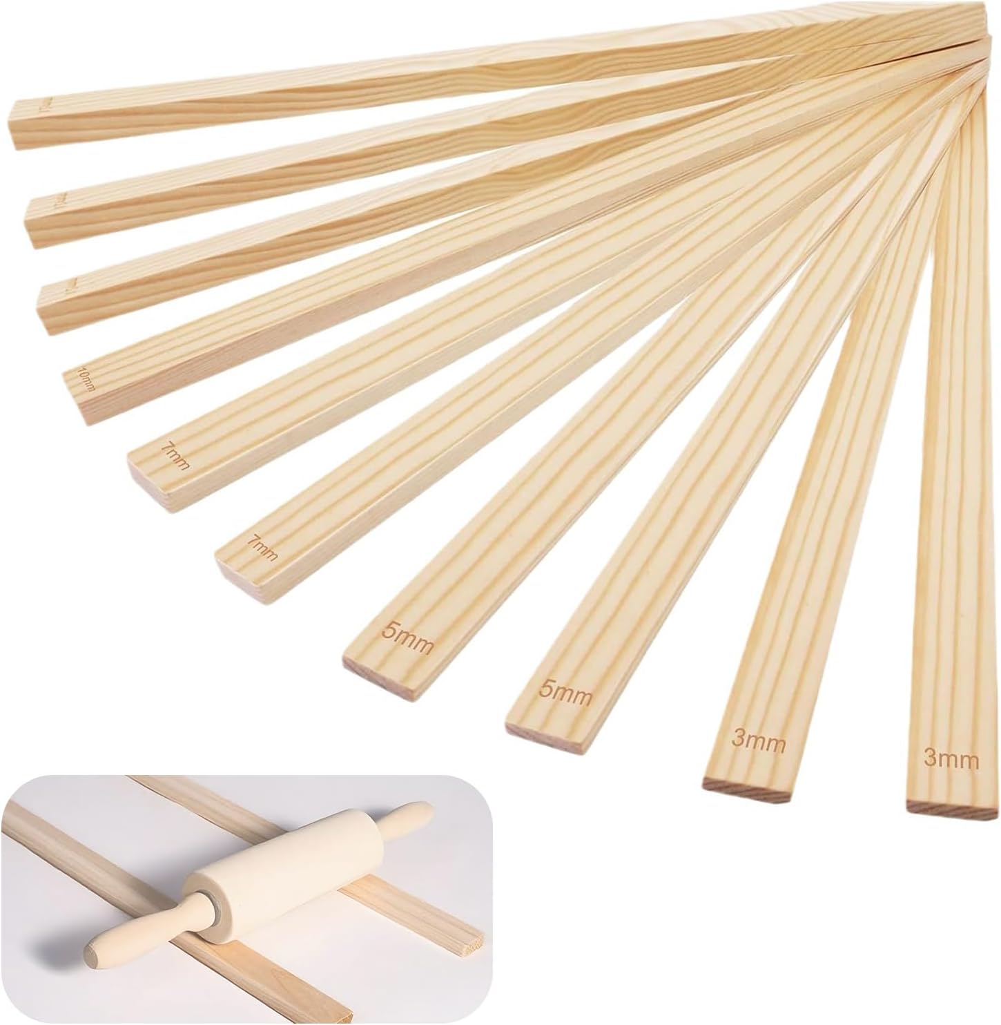 - 10-Piece 5-Size Wooden Thickness Guide Set:Includes 10 precision-cut guides (2 of each size:3mm/5mm/7mm/10mm/12mm) in 13.4inch length,perfect for achieving uniform clay thickness in polymer,pottery,and air-dry clay projects
