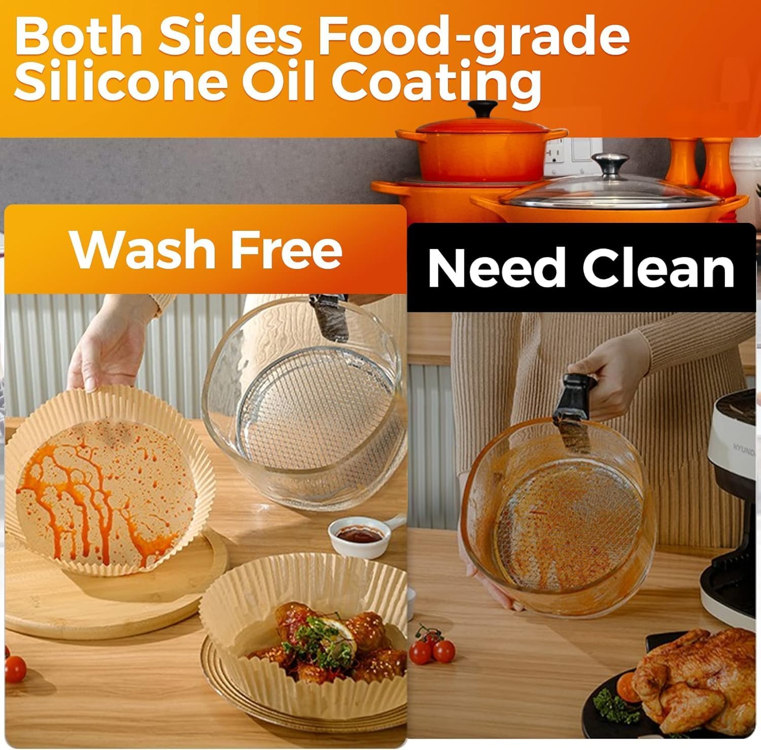 - Healthy & Reliable Materials: Vailnd air fryer parchment liners are crafted from unbleached raw wood pulp with a food-grade silicone oil coating. Free of fluorescent agents, BPA, and PFAs, they ensure safe, non-toxic baking without food mess