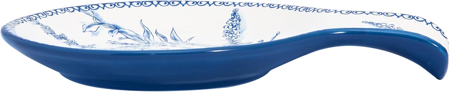 Bico Blue Garden Toile De Jouy Spoon Rest for Stove Top, Ceramic Spoon Holder for Kitchen Counter, Easy to Clean Coffee Spoon Rest Dishwasher Safe, Kitchen Cooking Utensil Rest for Ladles Spatula