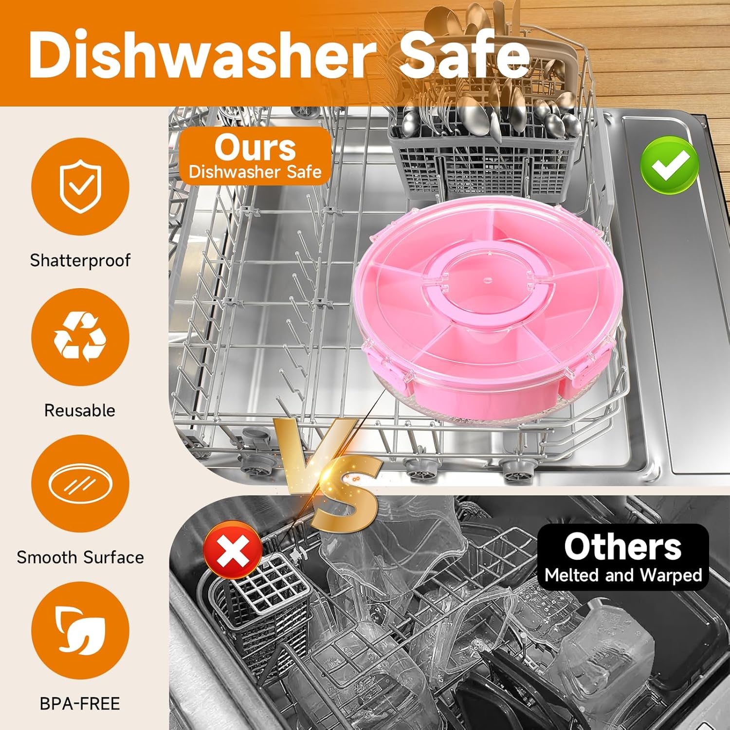 - QUALITY MATERIALS: Made from BPA-free materials with sturdy construction, featuring removable compartments for easy cleaning and versatile serving options