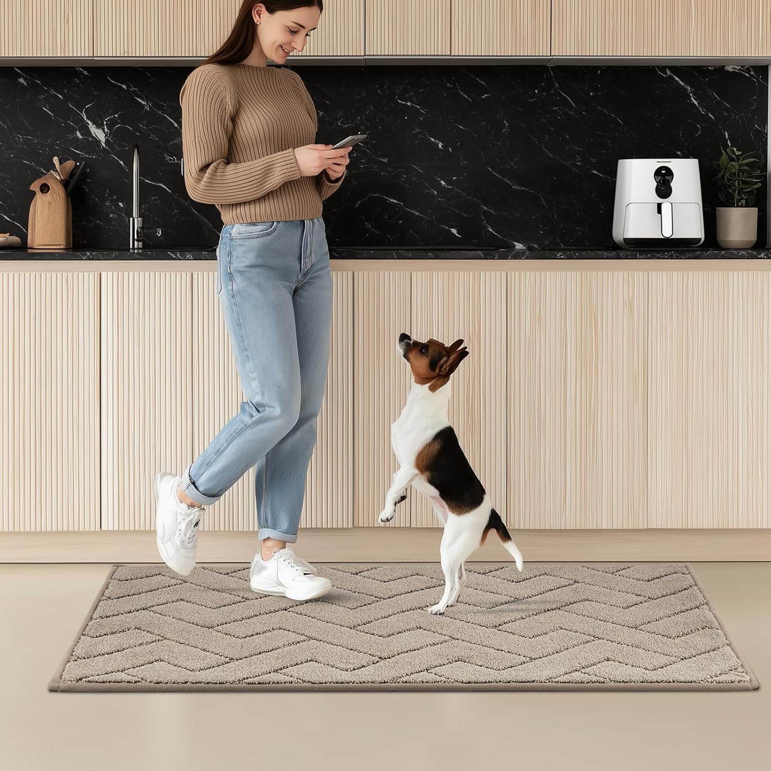 - [Comfortable & Non-Slip]: Kitchen Runner Rugs offer comfort and convenience when cooking, washing dishes or doing laundry. The sturdy, non-slip TPR rubber backing keeps them firmly in place and helps prevent hazards such as trips and falls. Before placing, make sure the floor is clean and dry.