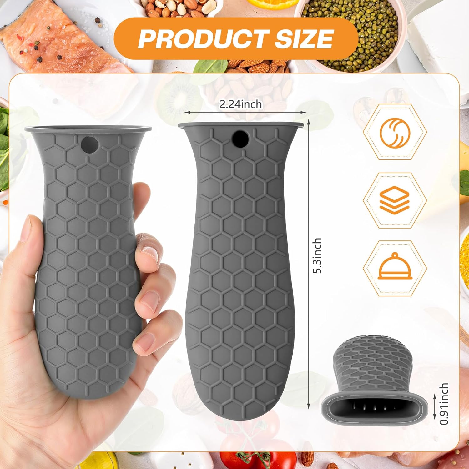 - Thoughtful Design with Anti-slip Texture: featuring a specially designed anti-slip texture and internal silicone ribbing, these cast iron handle sleeves effectively prevent slips and drops while handling hot cookware; This thoughtful design not only enhances safety but also allows for a confident grip, ensuring that you can maneuver hot pots and pans without fear of burns or accidents in the kitchen