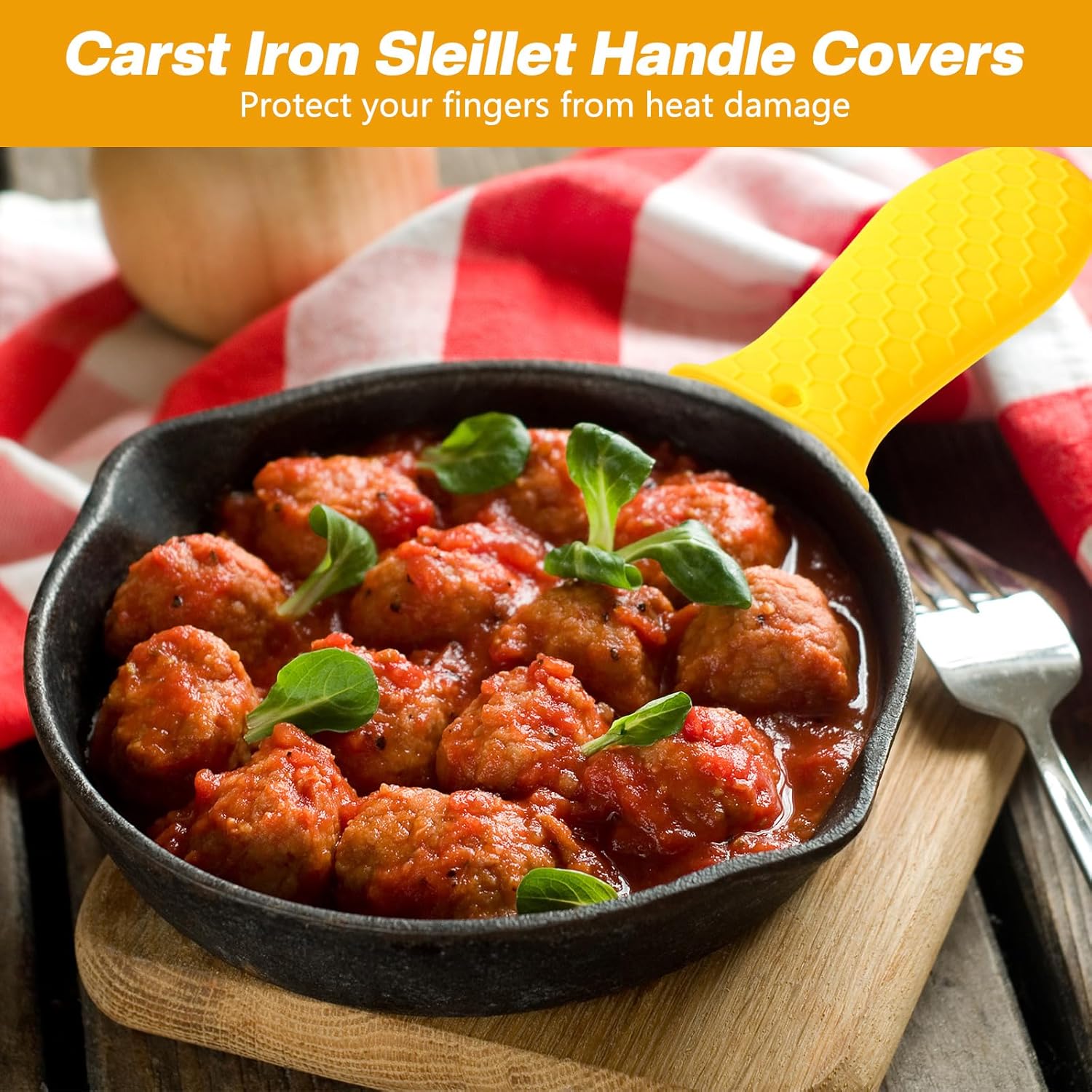 - Thoughtful Design with Anti-slip Texture: featuring a specially designed anti-slip texture and internal silicone ribbing, these cast iron handle sleeves effectively prevent slips and drops while handling hot cookware; This thoughtful design not only enhances safety but also allows for a confident grip, ensuring that you can maneuver hot pots and pans without fear of burns or accidents in the kitchen