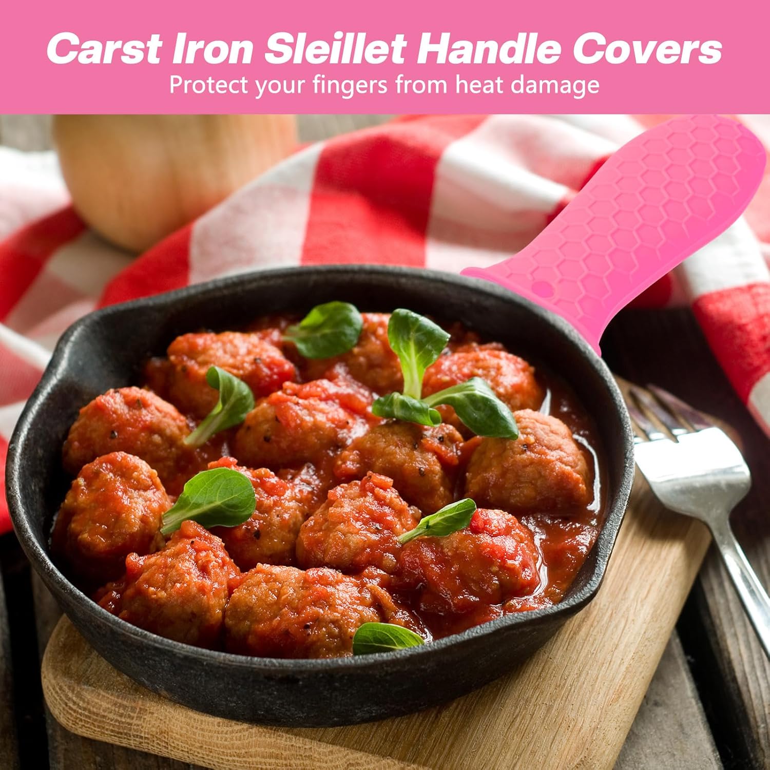 Patelai 2pcs Silicone Handle Cover for Cast Iron Skillet Kitchen Silicone Handles for Pots and Pans Non-Slip Pot Holder Sleeve for Fry Pan Griddles Metal Aluminum Cookware(Pink)
