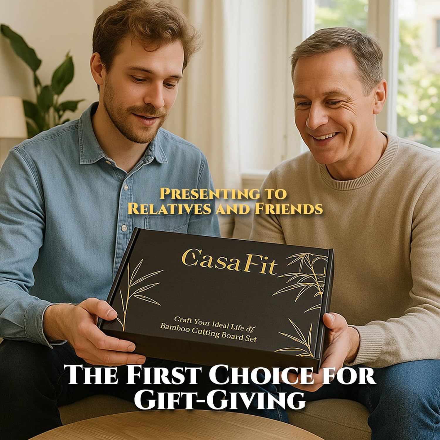Bamboo Cutting Board 3-Piece Set with Juice Grooves – Non-Slip Wooden Chopping Boards for Kitchen & Housewarming Gfit, Multi-Size Serving Tray for Meat, Vegetables, Fruits