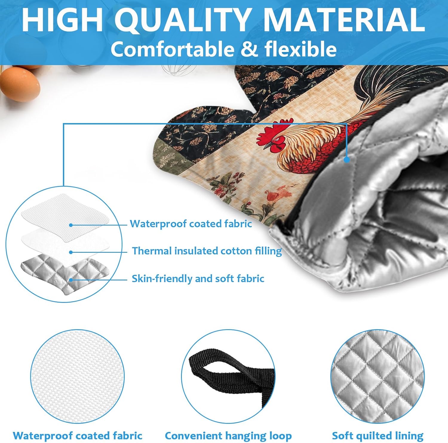 Rustic Rooster Oven Mitts and Pot Holders Sets Heat Resistant 4Pcs Potholders Oven Gloves Hot Pads for Kitchen Baking Cooking Grilling BBQ