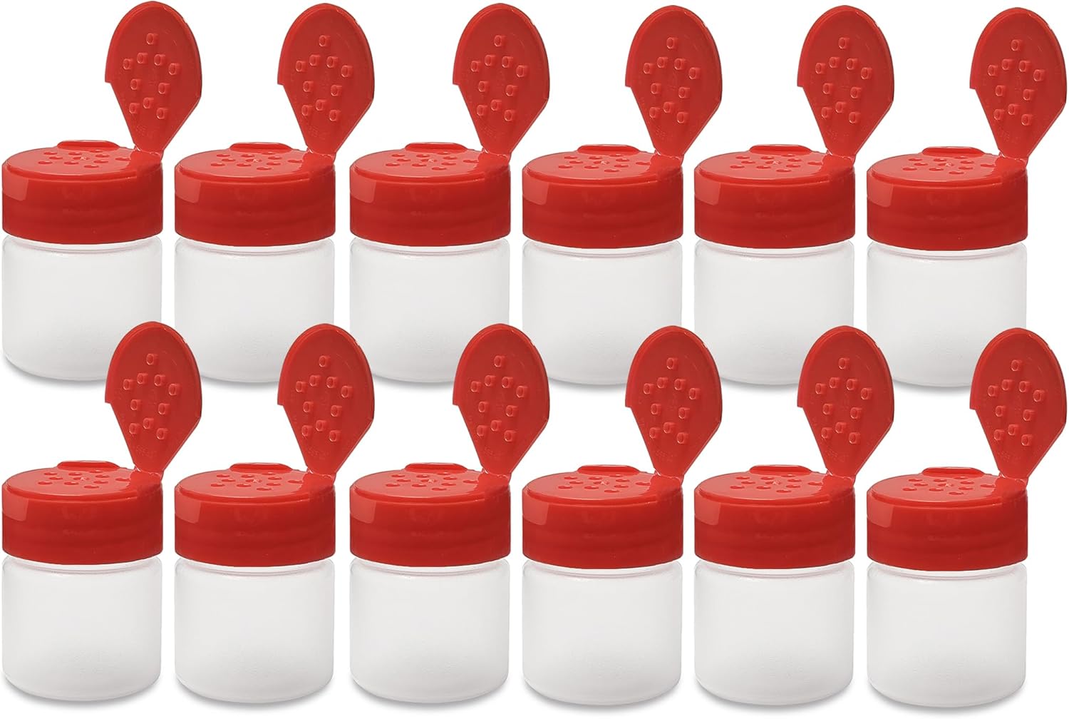 - Flip & Sift Dispensing Caps with 10 Holes: Each jar includes a 43mm red flapper cap with 10 dispensing holes (0.125" diameter each) for controlled pouring. Snap the lid back to lock in freshness and prevent spills—no messy fitments needed.