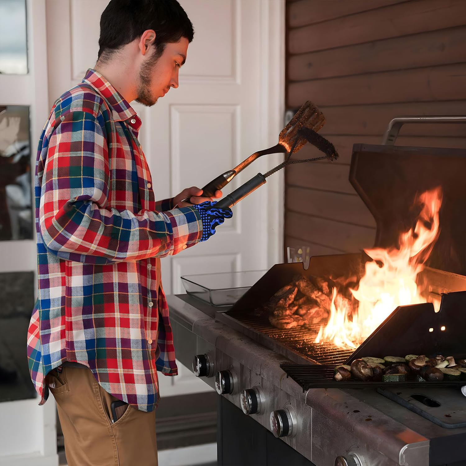 - 1472°F Heat Resistant: This grilling gloves provides high heat resistant up to 1472°F, providing perfect protection for your hands from high temperatures when your are grilling, baking, or cooking.