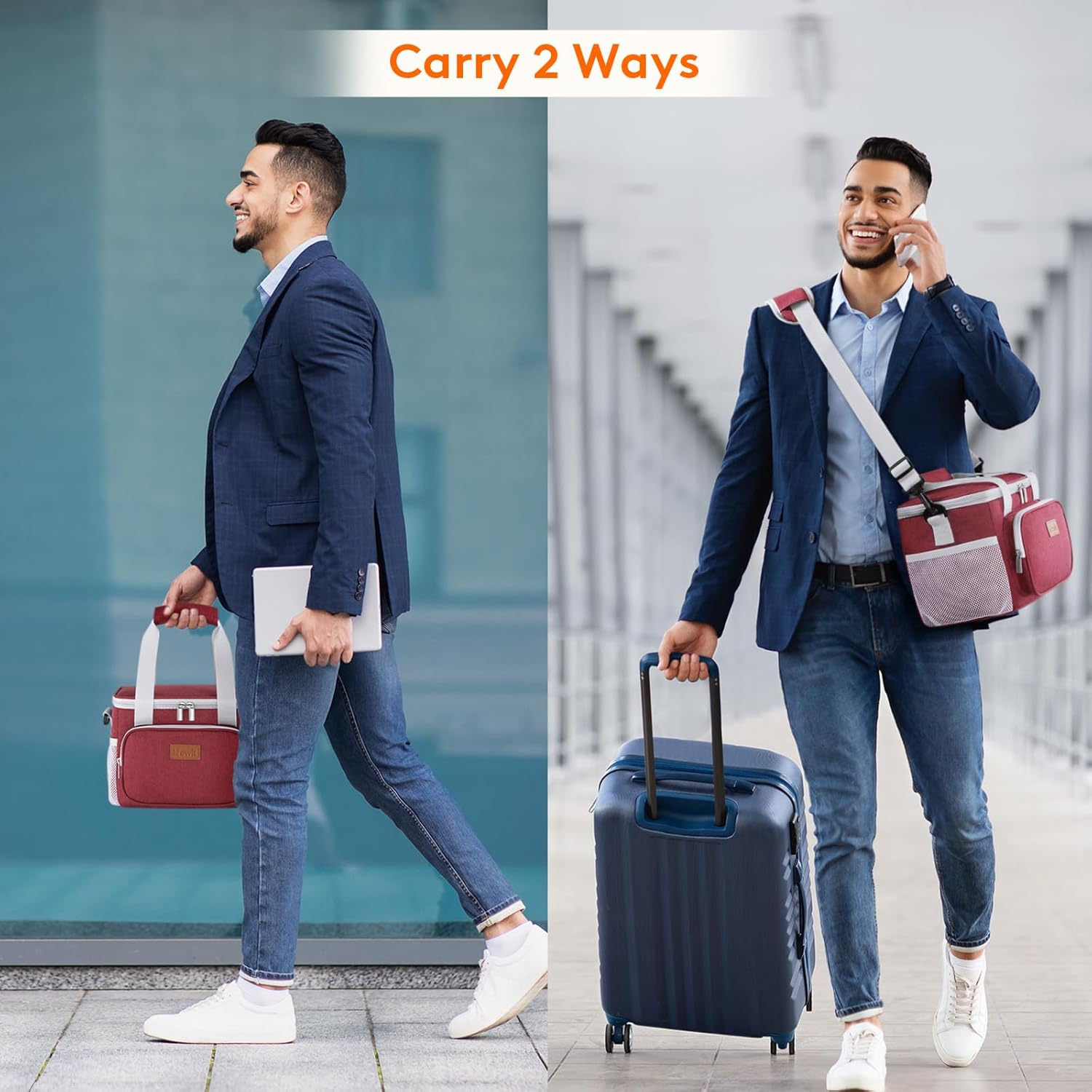 - Convenient & Portable: The lid of this cooler lunch bag can be opened up widely with strong two-way zippers, which means you can put your lunch container into the bag and take out of the bag vertically. Prevent liquids from leaking out of the container and soiling inside the bag. Tough handles and shoulder girdle allows you to carry it easily. Moreover, the front and side extra pocket can hold small items like keys and earbuds.
