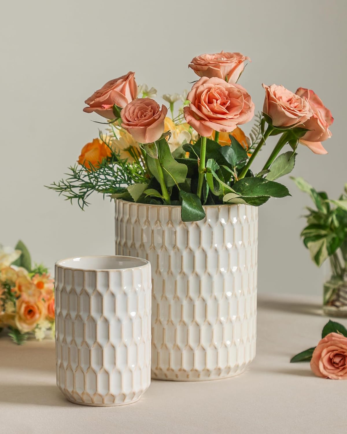 - Rustic-Chic Aesthetic: Hand-finished with a distressed coating and simple honeycomb pattern, this white utensil holder adds farmhouse charm to countertops. The neutral color palette blends effortlessly with modern, industrial, or cottage-style décors