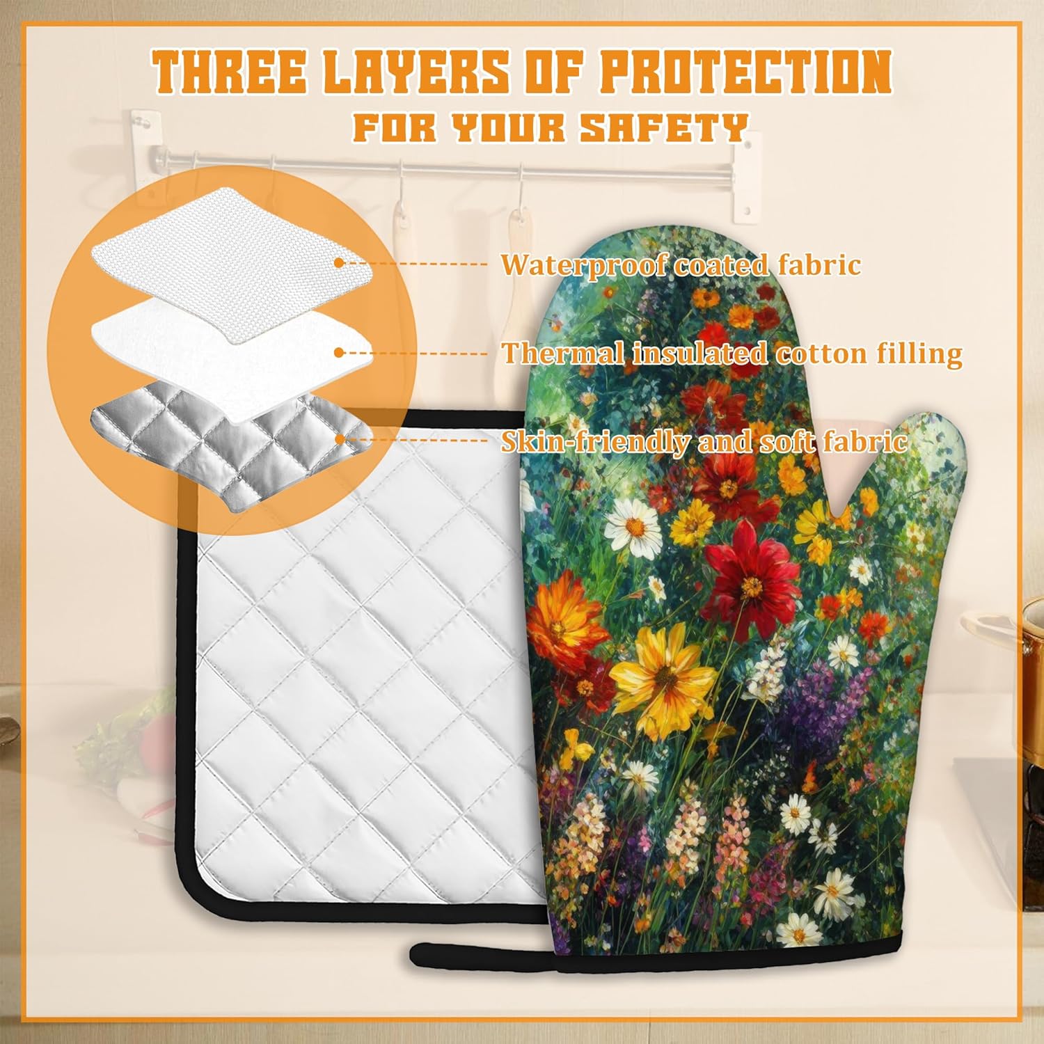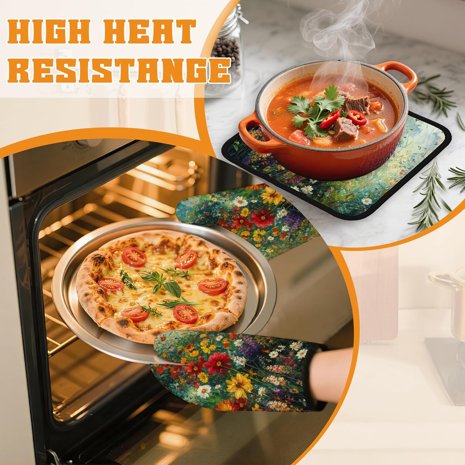 - Heat Resistant: Made from polyester and insulating cotton, these oven mitts and pot holders provide excellent heat resistance to effectively protect your hands from hot pots, pans, and baking trays. Cook with confidence and safety.