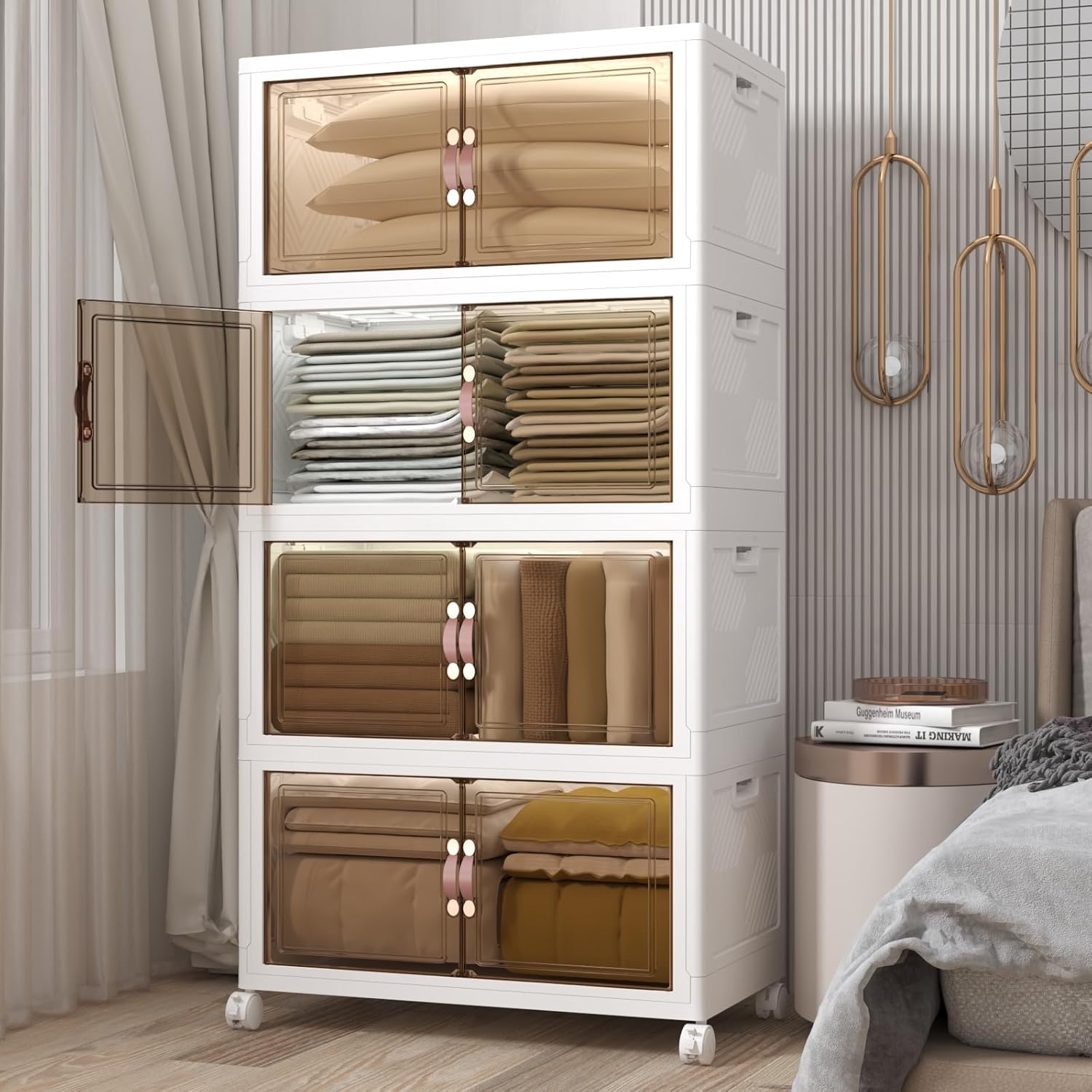 - STACKING WITH LOCKING STABILITY: Engineered with interlocking grooves and dual side locks, these stackable plastic storage bins stay firmly in place even when stacked high. SMOOTH ROLLING WHEELS FOR EASY MOVING: These stackable storage bins with wheels come equipped with 4 of 360°smooth-gliding wheels.. Whether you're reorganizing your closet, adjusting your dorm layout, or refreshing your office space, these bins offer flexible and convenient mobility.