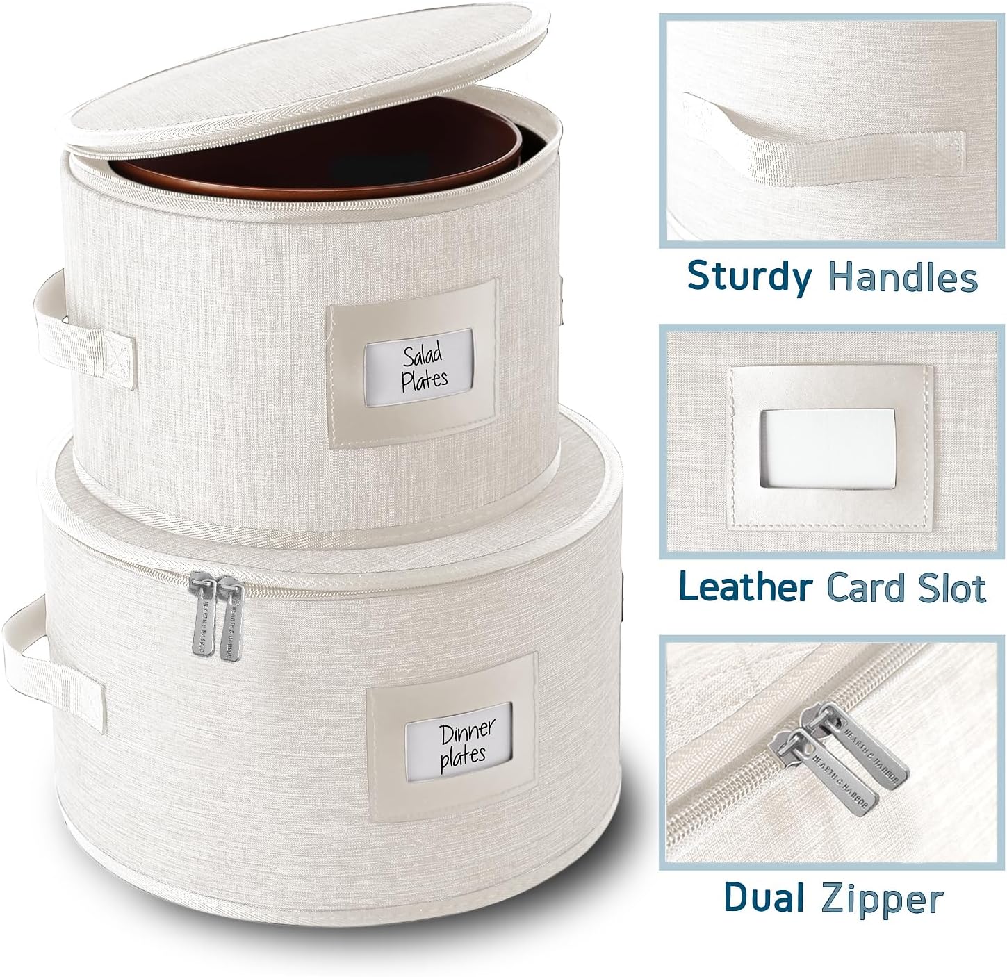 - Convenient and Stylish: Our dish storage protectors boast sturdy handles, zippered lids, and faux leather label slots for neat, elegant kitchen organization and storage.