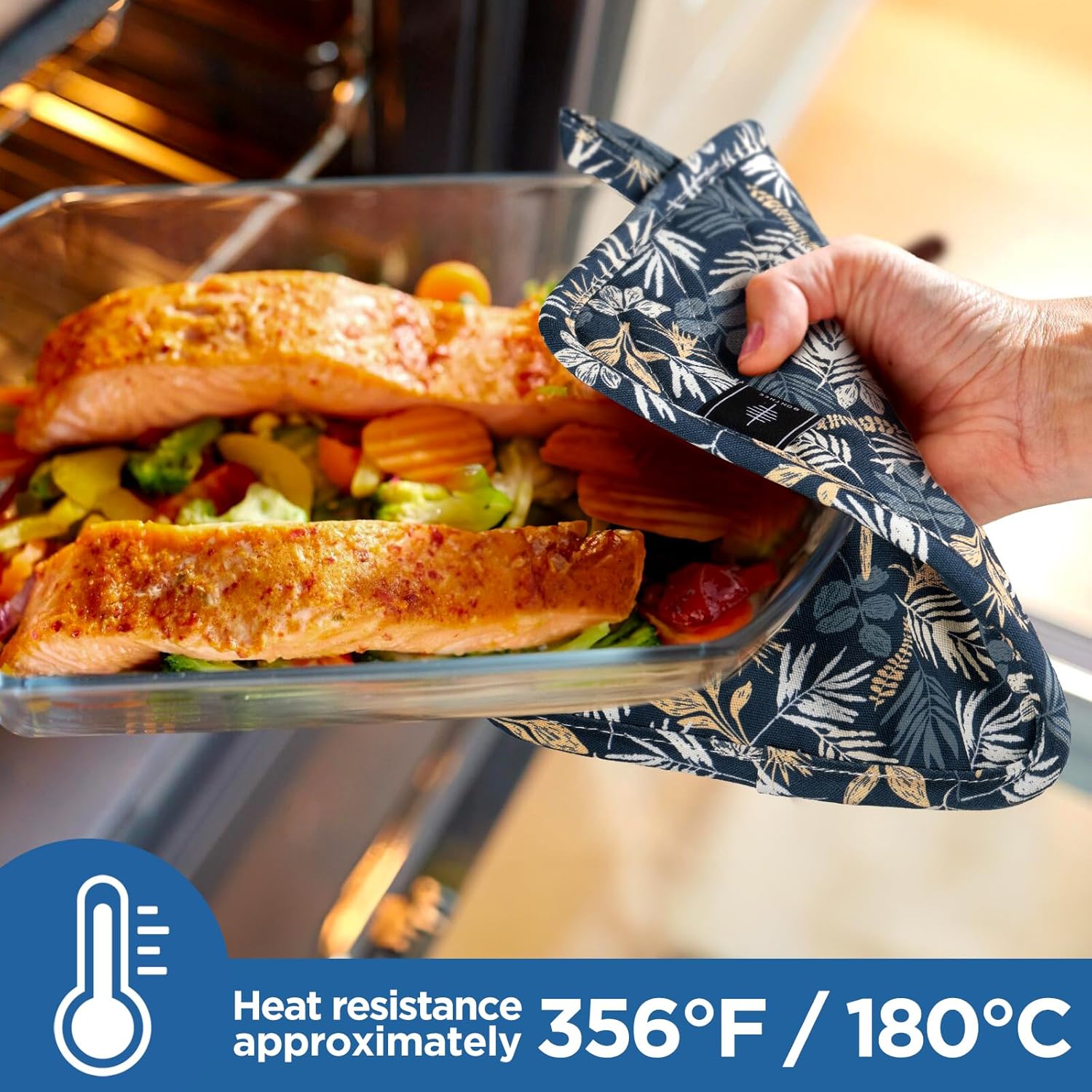 Pot Holders for Kitchen Heat Resistant Hot Pads for Countertops Oven Pot Holders Cotton Potholders for Kitchen Cooking Baking (Blue Leaves)