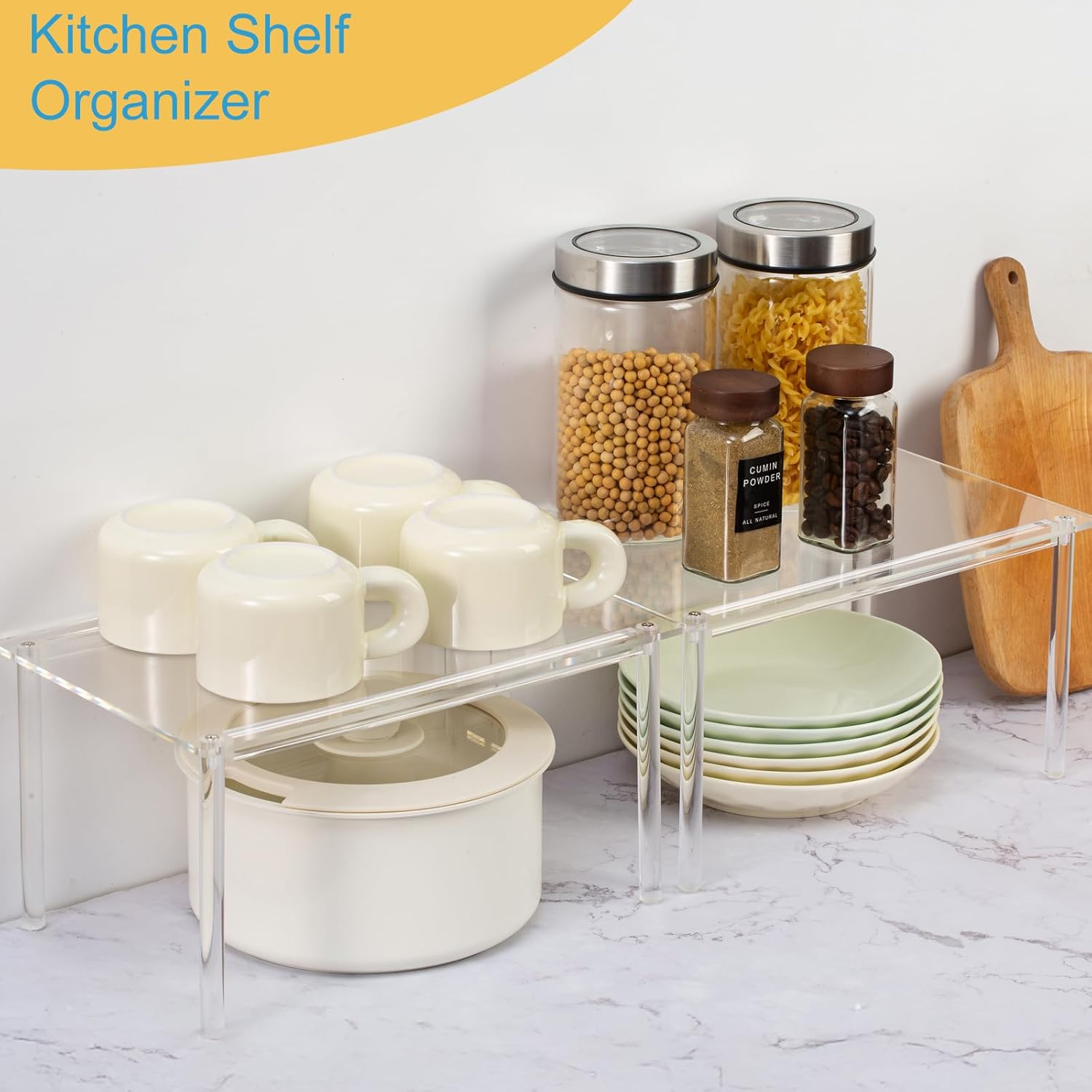 - Plenty of Storage: Acrylic Cabinet Organizer can keep your cooking essentials, such as spice jars, containers, cans, cutlery, and cookbooks organized, easily visible, and quick to find with these kitchen organizers and storage. Acrylic spice rack can also serve as a small food table for cats