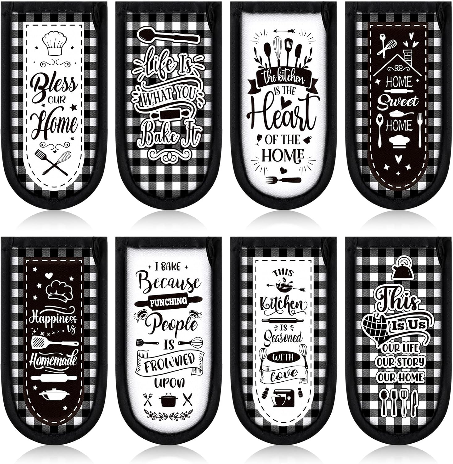 Patelai 8 Pcs Kitchen Them Cast Iron Skillet Handle Covers Heat Resistant Pan Handle Holder Sleeve Black and White Buffalo Plaid Non Slip Skillet Pot Holders Mitt for Kitchen BBQ Baking Cookware Decor