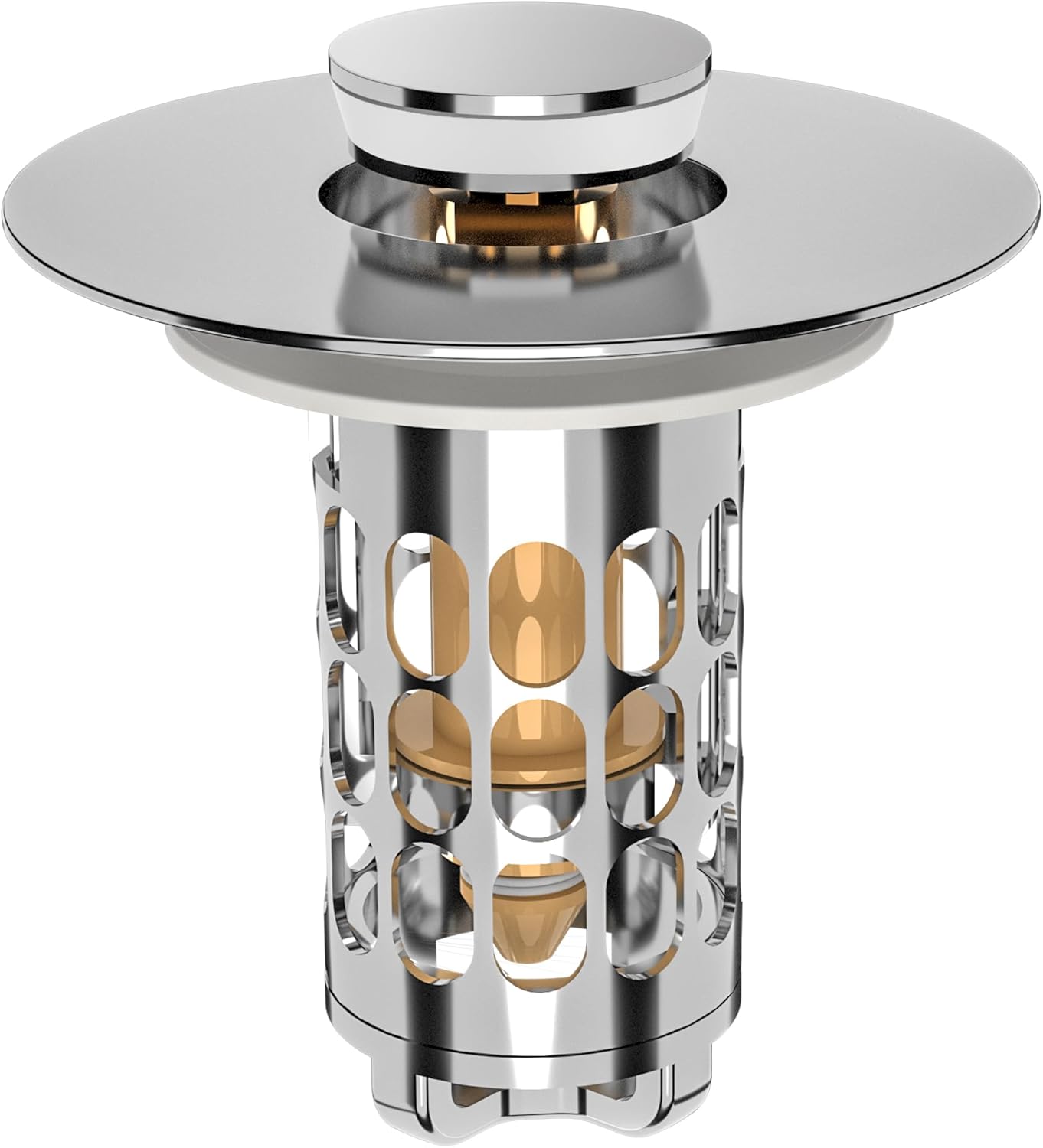- Sturdy and Easy to Use: This sink strainer is made of brass and stainless steel for long-lasting and rust-proof.Directly insert to drain hole for use,press down pop-up cap to store water as sink plug,press again to drain water as bathroom sink strainer.