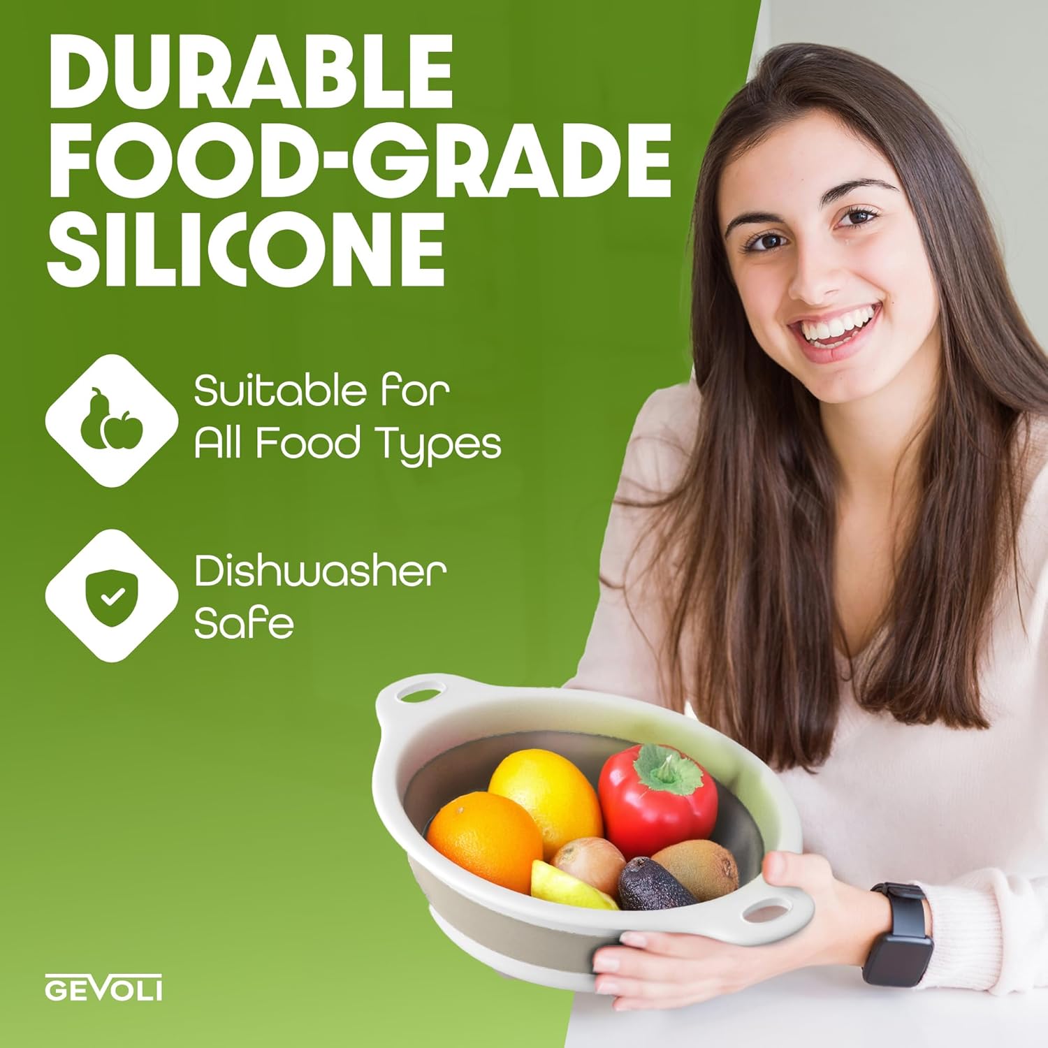 Collapsible Colanders (2 Pack Set) Food Strainers with Over-Sink Water Draining Base for Pasta Fruits and Vegetables (4 and 5 Quart) - White Beige