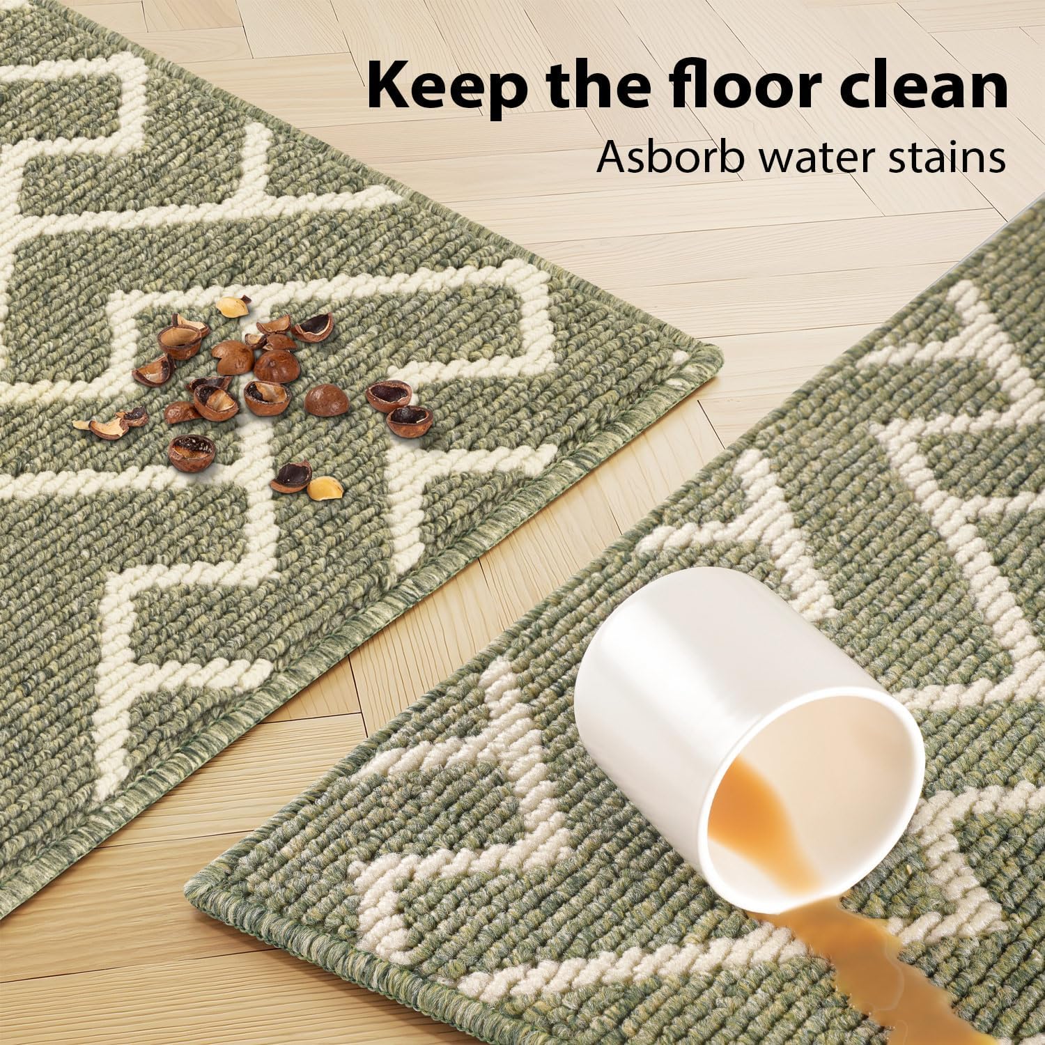 - NON-SLIP BACKING: High quality TPR backing to keep the kitchen mat firmly in place and prevent shifting and skidding. Provide better security for families with children or the elder. Attention: The kitchen rug underlay should be clean, flat, and dry before placing the mat on the floor. Water or dust under mat may cause slippage.