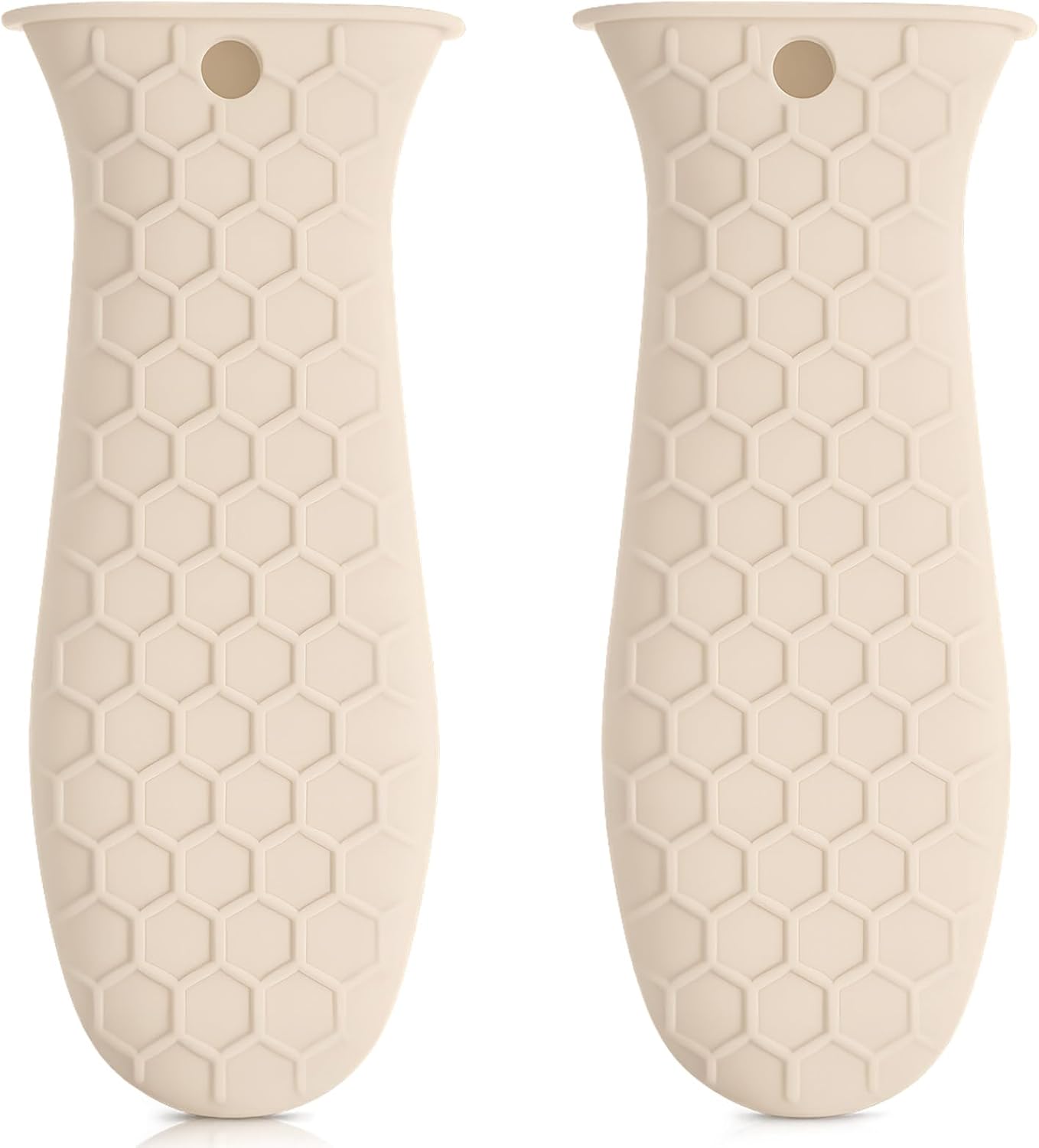 Patelai 2pcs Silicone Handle Cover for Cast Iron Skillet Kitchen Silicone Handles for Pots and Pans Non-Slip Pot Holder Sleeve for Fry Pan Griddles Metal Aluminum Cookware(Beige)