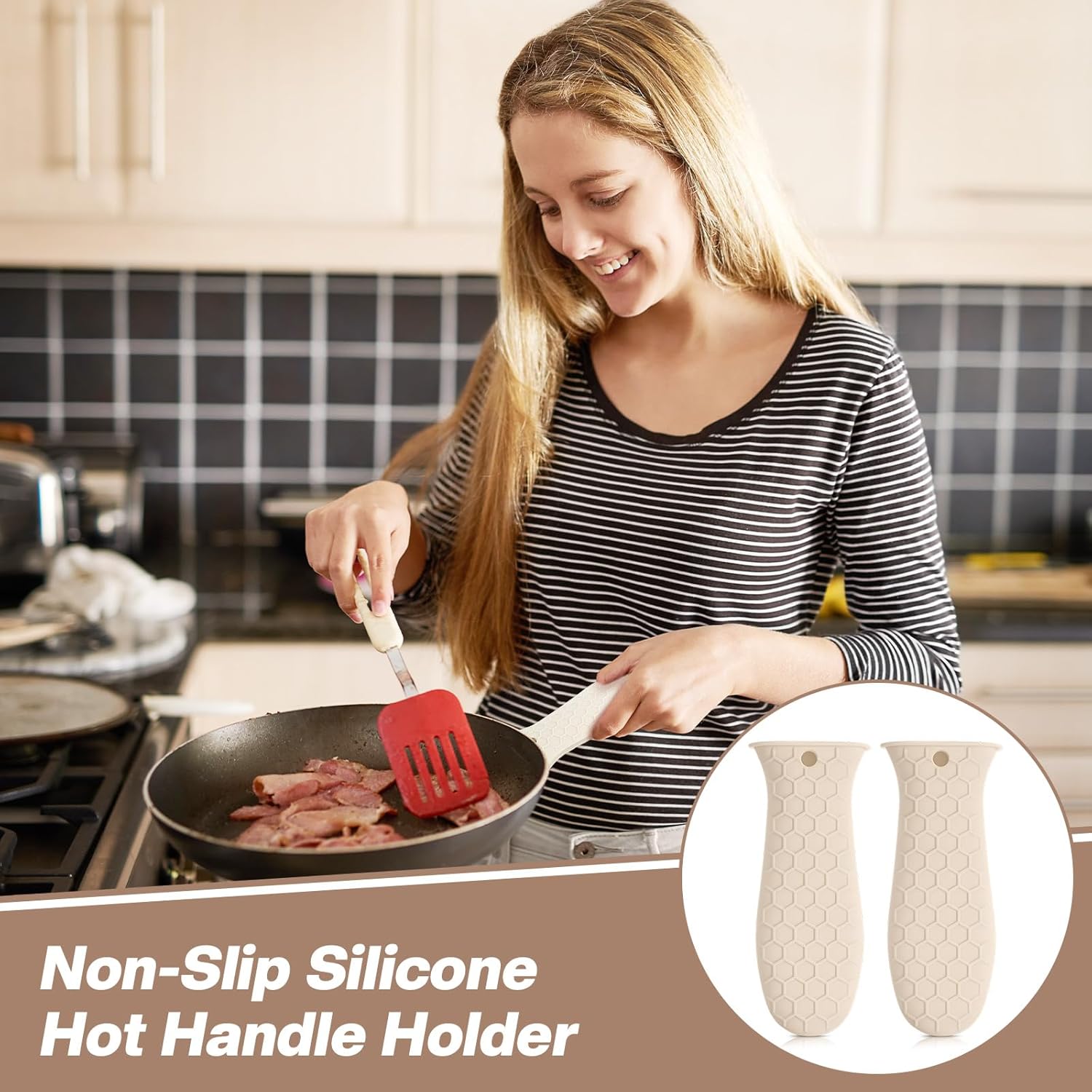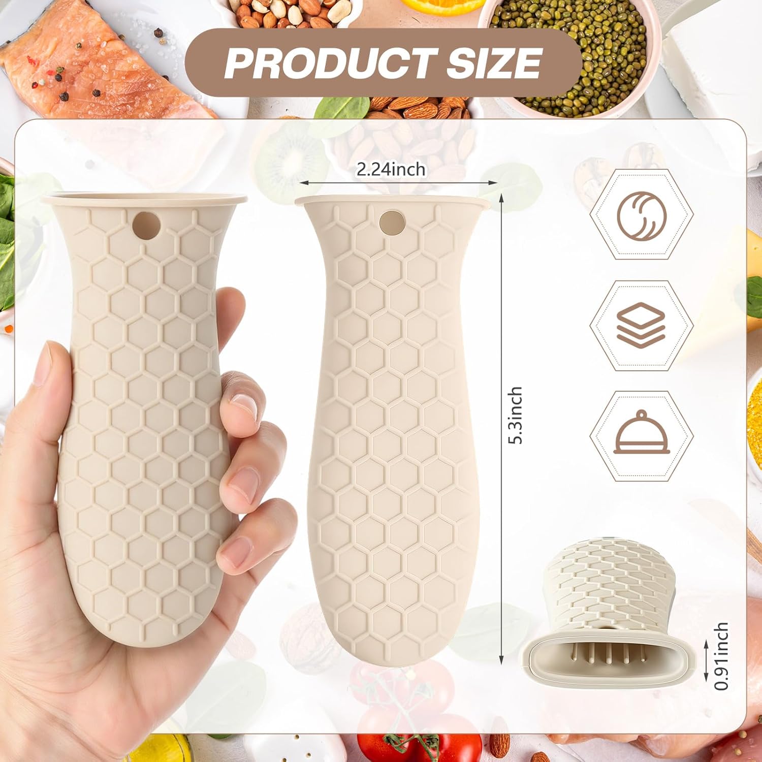 - Thoughtful Design with Anti-slip Texture: featuring a specially designed anti-slip texture and internal silicone ribbing, these cast iron handle sleeves effectively prevent slips and drops while handling hot cookware; This thoughtful design not only enhances safety but also allows for a confident grip, ensuring that you can maneuver pots and pans without fear of burns or accidents in the kitchen