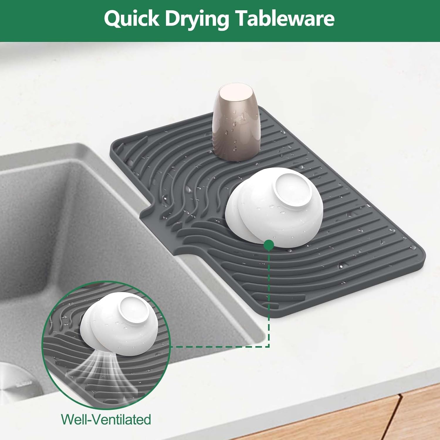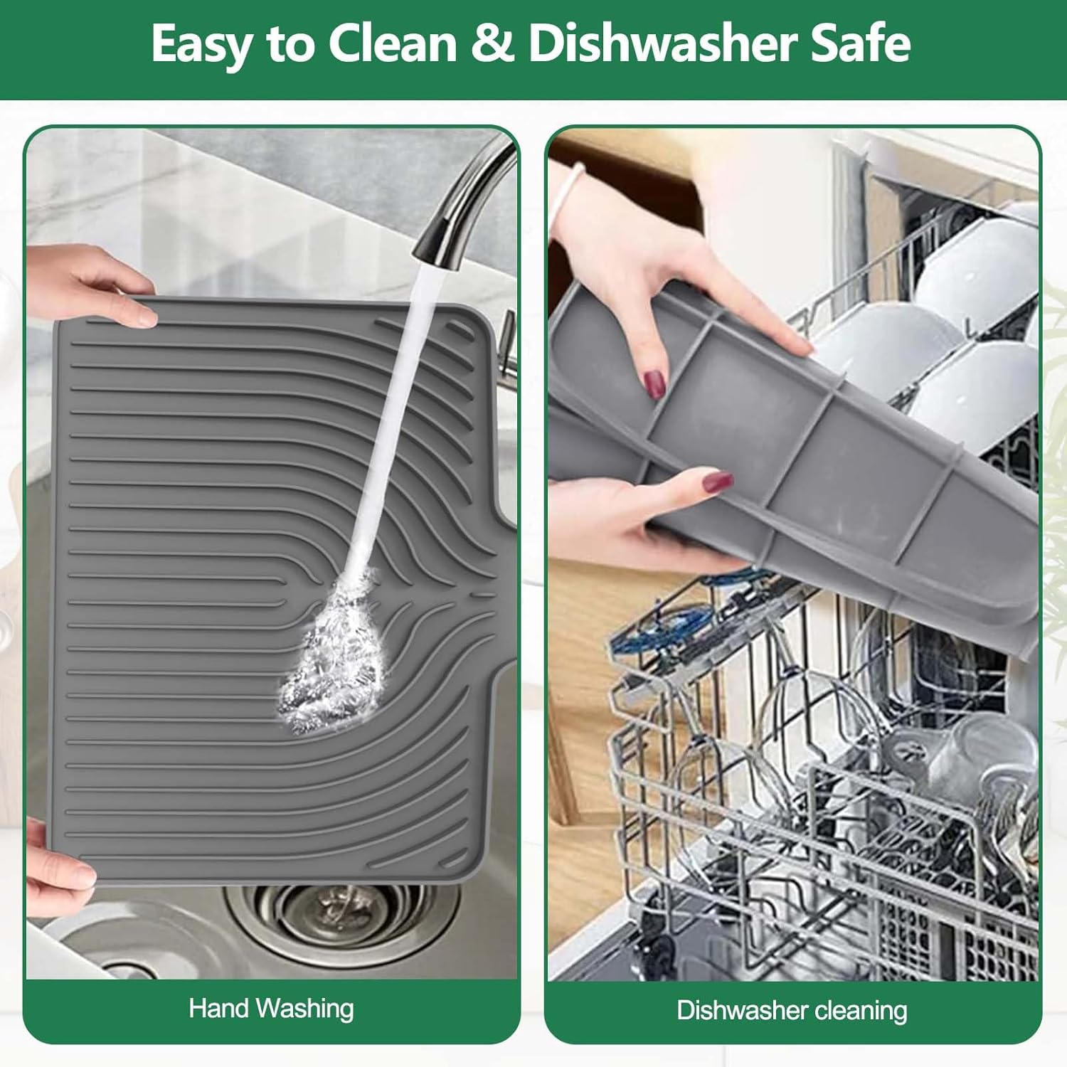 - Food-Grade Silicone Material: The kitchen counter dish drying mats are crafted from high-quality, food-grade silicone. It's durable, soft and resistant to deformation. It offers a safe surface for drying dishes, fruits and veggies, guaranteeing a cleaner and more hygienic kitchen area