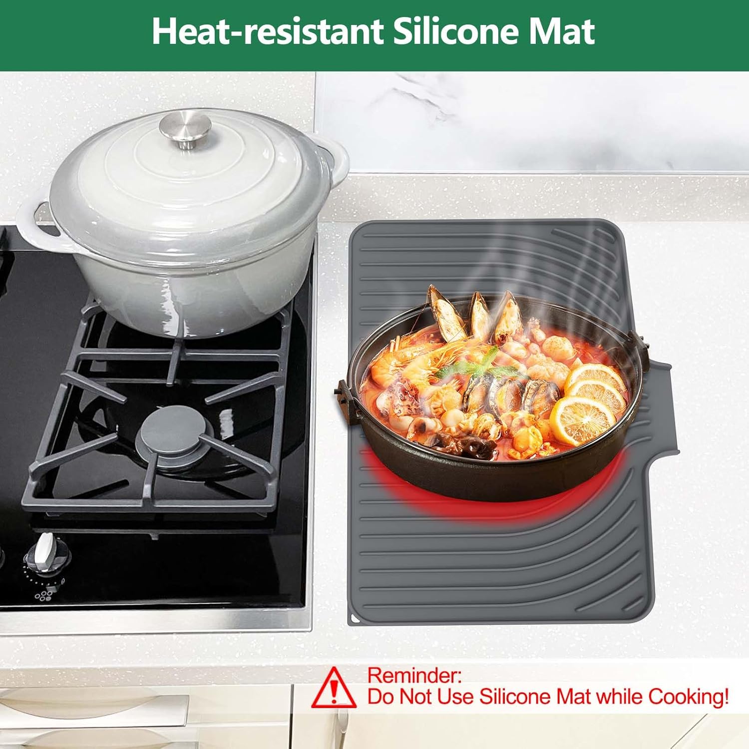 - Anti-Slip and Heat-Resistant: Dish mat drying kitchen mat has a great anti-slip design, keeping dishes, fruits, veggies and glassware steady. Besides, it's heat-resistant up to 450°F (230°C), safeguarding countertops well from hot pots and appliances