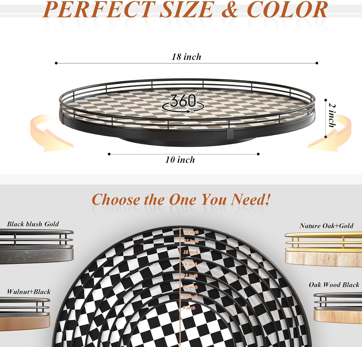 18" Black and White Kitchen Lazy Susan Turntable, Round Checkered Decorative Tray, Large Lazy Susan for Dining Table Centerpiece, Pantry, Kitchen, Bathroom, Countertop, Cupboard, Home Decor