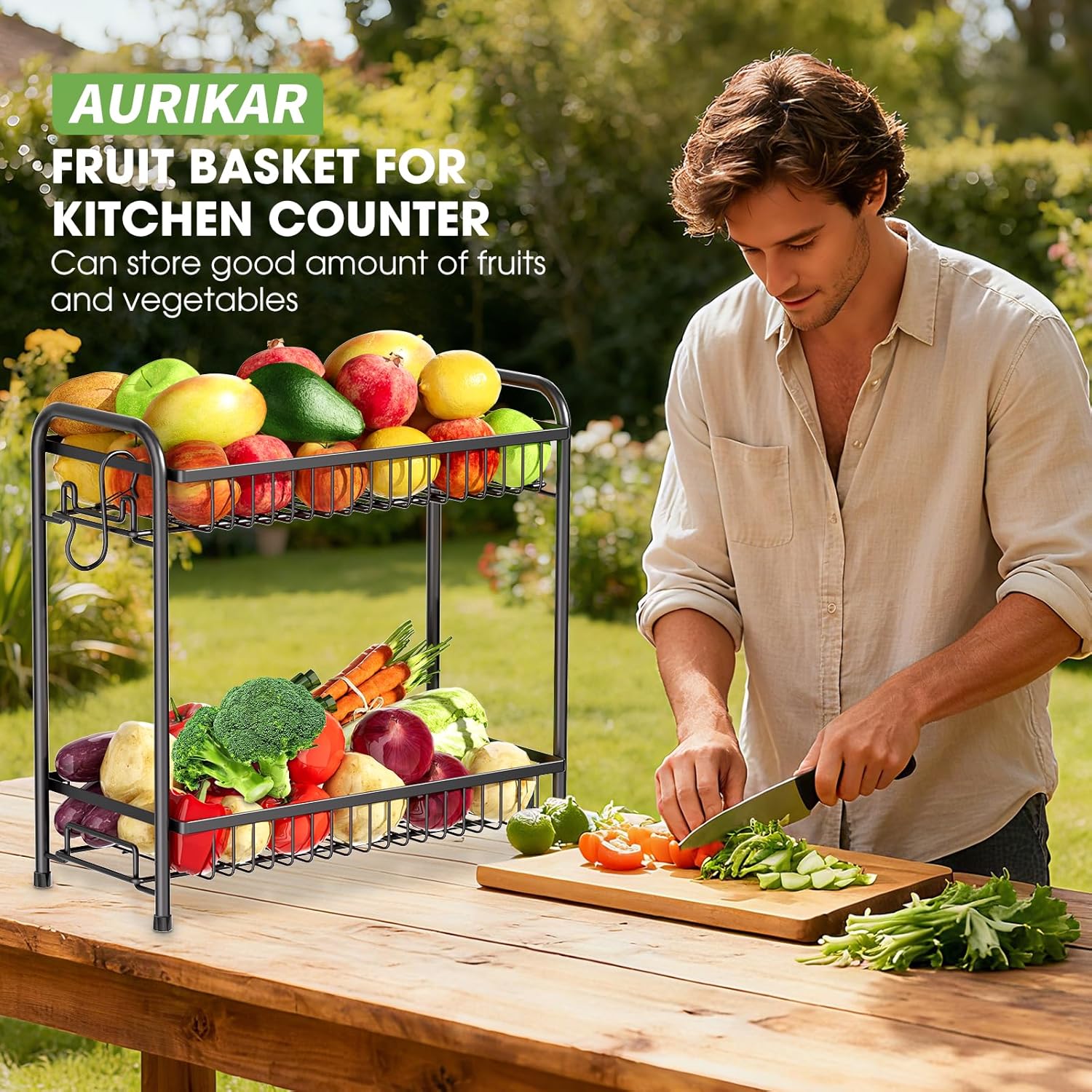 - Sturdy Metal Fruit Holder: Crafted from waterproof, rust-resistant metal, this fruit vegetable basket countertop ensures long-lasting use. The spacious design holds plenty of fruits and vegetables, while non-slip feet provide steady placement on any surface, and a convenient handle allows for easy carrying