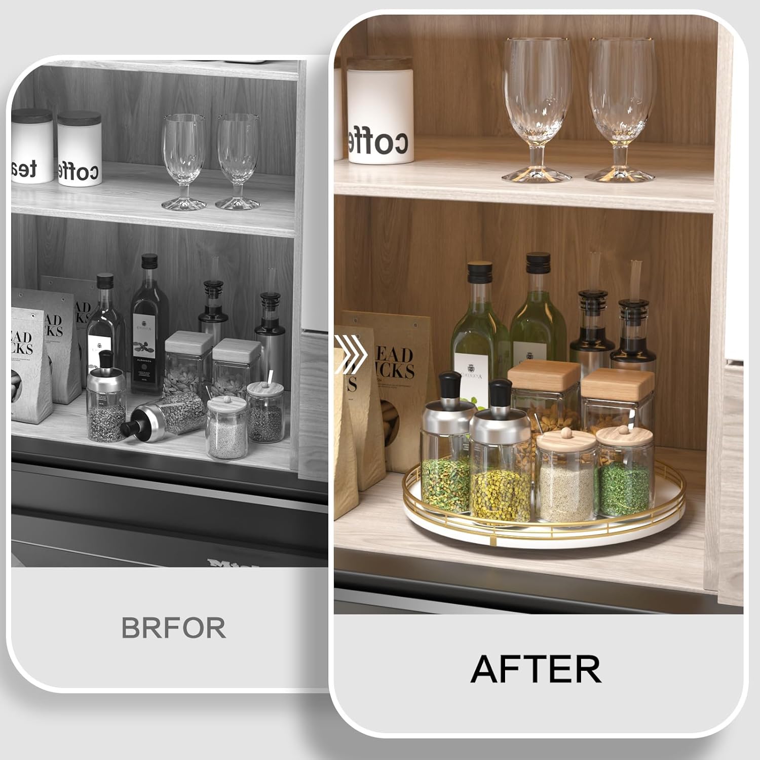 - 【Versatile Home Organizer】More than just a kitchen counter organizer, this lazy susan can also be used for coffee stations, bathroom essentials, or as a rotating tray for skincare and cosmetics. A true lazy susan organizer for cabinet, countertop, and beyond.
