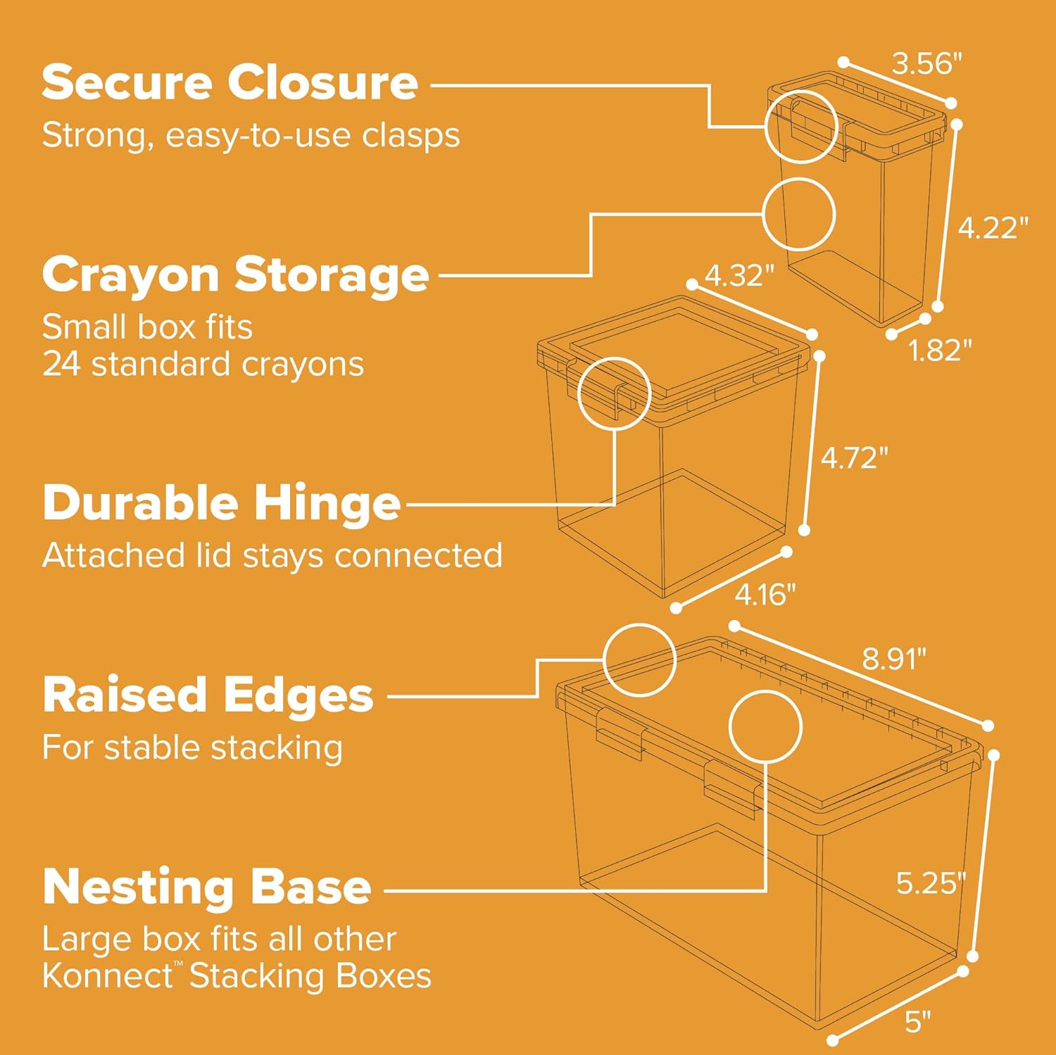 - MAXIMIZE EVERY INCH: Designed to save space whether you're using them or not. Stack with other Konnect storage boxes securely when full, and nest them neatly when empty to keep your storage area tidy and efficient.