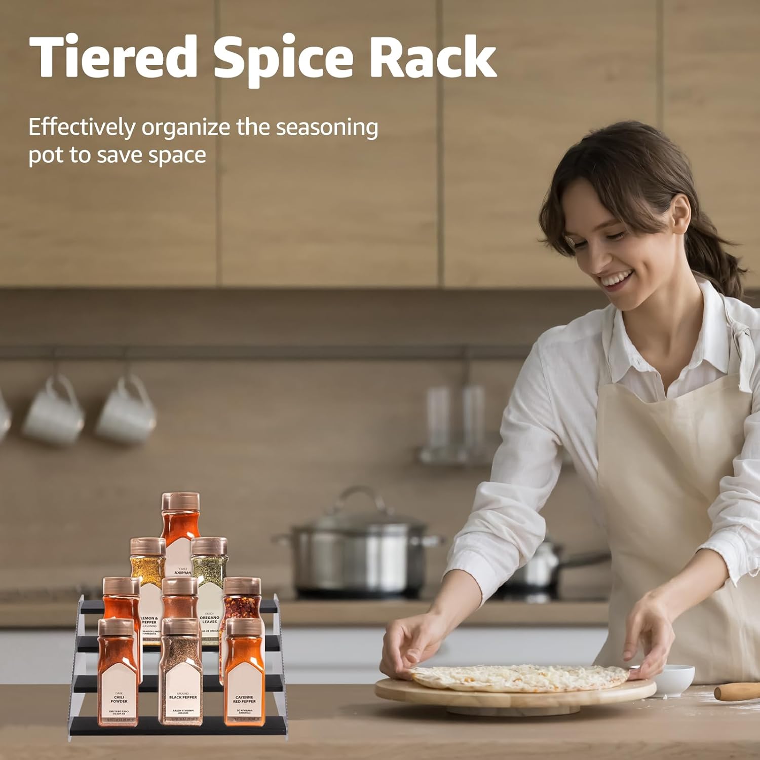 - What You Get: A simple-to-install tiered spice rack. Keep your spices visible and your cooking organized.
