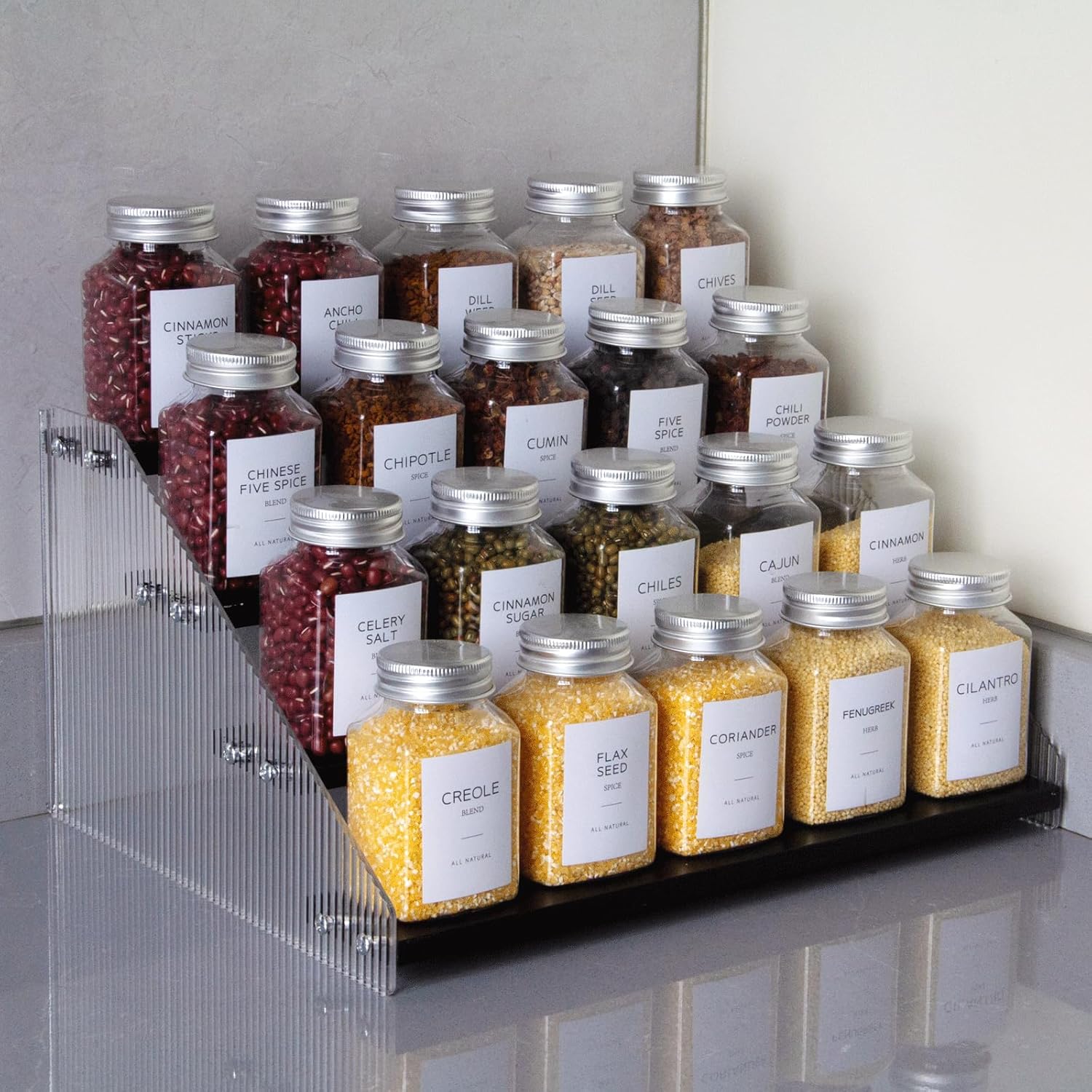 - Elegant & Sturdy: Risers display stands constructed from high-quality pine wood and corrugated acrylic, making it both aesthetically pleasing and fashionable, as well as durable and resistant to deformation, the spice shelf is a beautiful and robust addition to any space
